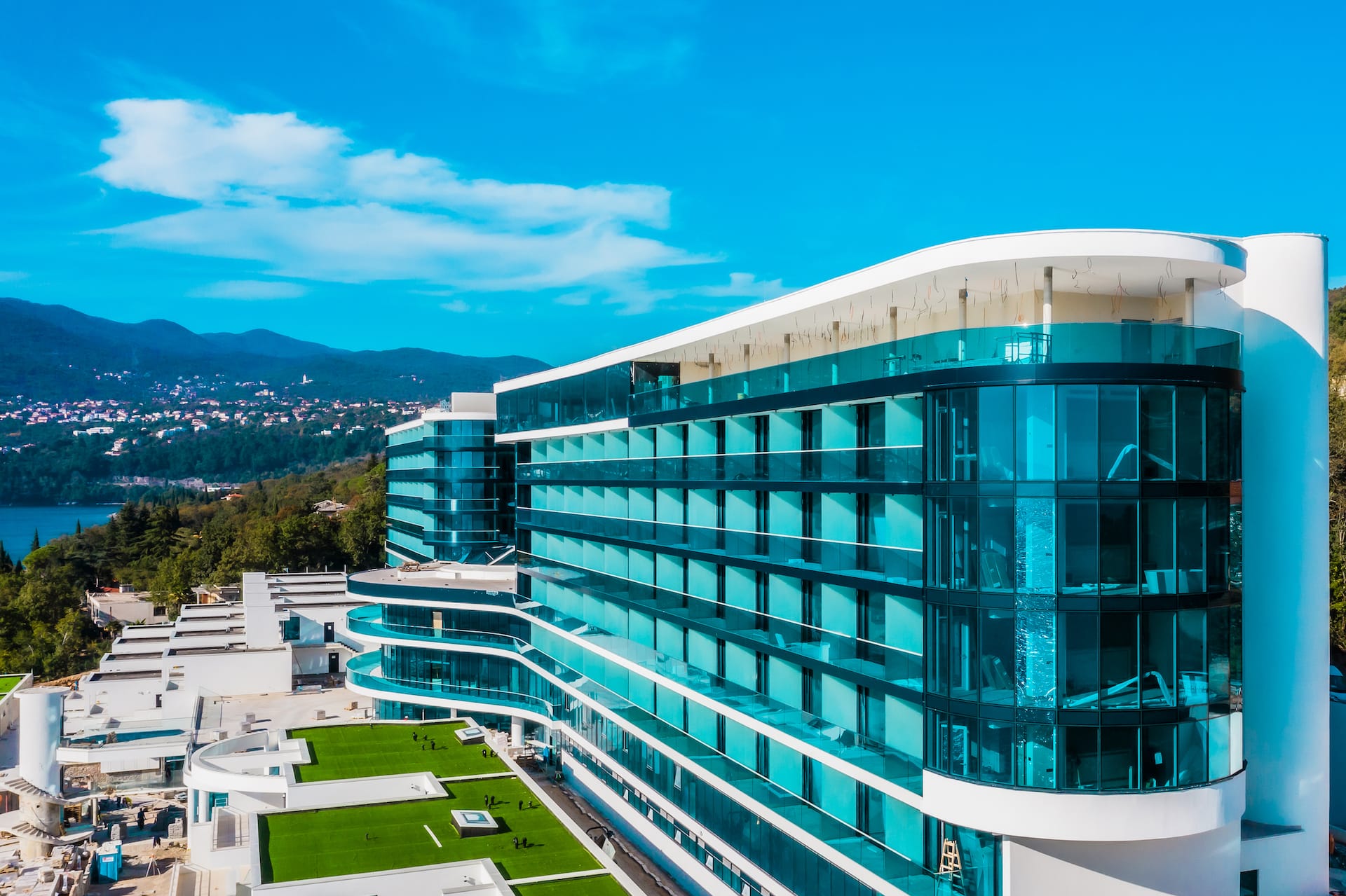 Hilton resort and hotel Costabella is located in Rijeka. Beautiful, luxurious and classy. Nebo Restaurant & Lounge by Deni Srdoč proudly combines the unique tastes of Croatia with a beautiful view of the sea. Beach next to the hotel, outdoor and indoor pool, rooms with a view located right above the sea, beautiful terrace, wellness, balcony with a breathtaking view. Facades, windows, doors, domes, arches are serious work from our production. The roof dome built on the hotel is a very complex element and belongs to our most interesting references together with glasses weighing around a ton at a height of 30 meters.